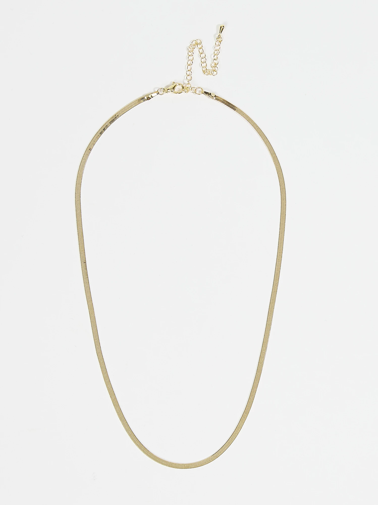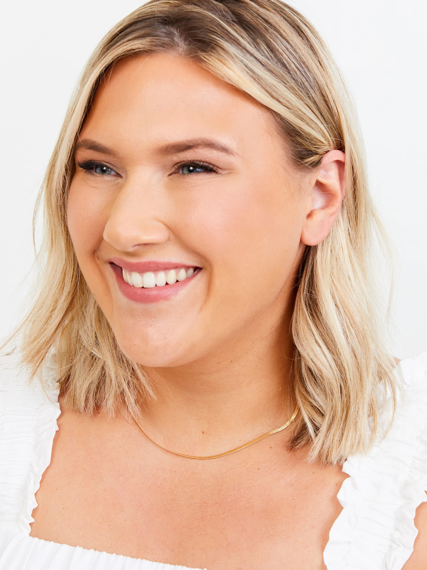 This herringbone chain necklace features 18k gold dipped hardware that has an anti-tarnish finish. A timeless accessory that easily completes your everyday look with bohemian chic style and a pop of effortless shine! Perfect for layering.