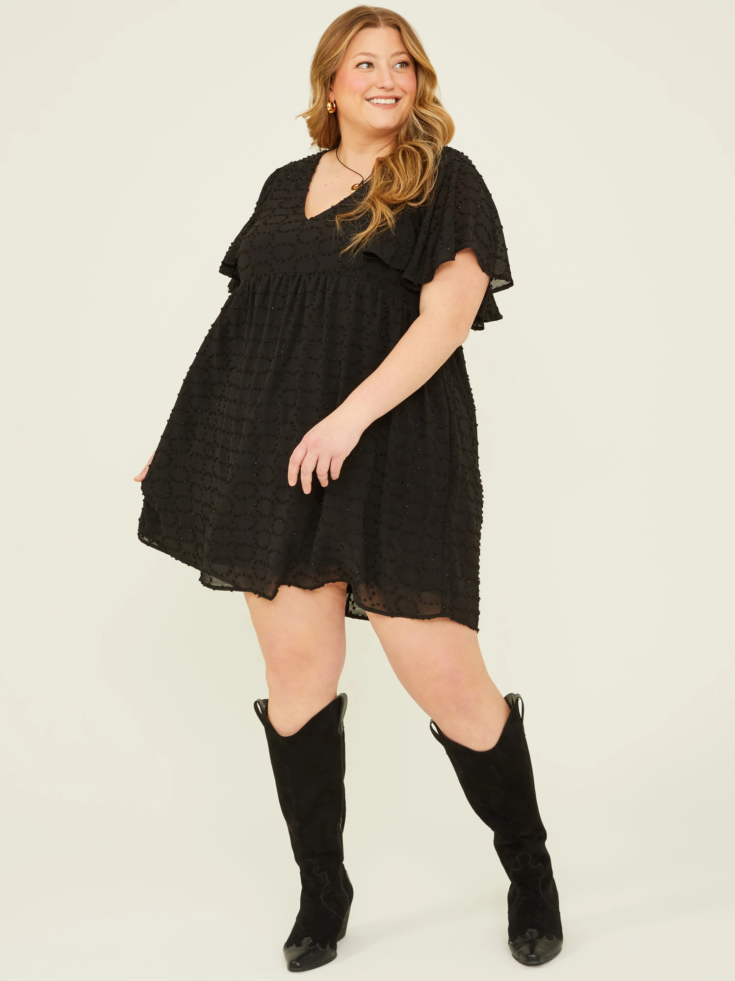 This flattering A-line dress is perfect for any formal occasion with its intricately patterned clipdot texture that tastefully glistens in the light with its subtle shimmer thread. Short flutter sleeves and pockets seal the deal for us. Pair with simple jewelry, and let this dress do all the talking with its elegant and romantic style.