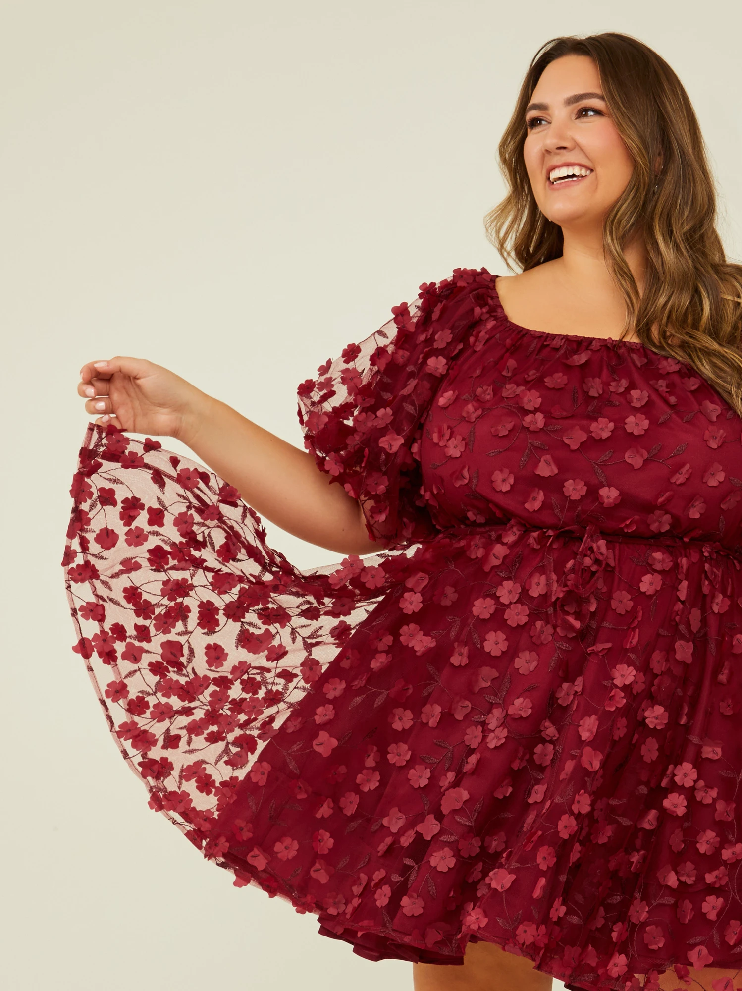 This dress is nothing but a dream! With its elegant floral applique detailing and romantic puff sleeves, you are sure to wow the crowd. The beautiful fit is complemented with a stretchy elastic top hem and waistline for maximum comfort. Feel radiantly beautiful and feminine in this one-of-a-kind beauty.