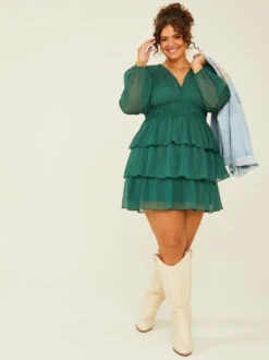 Adorned with a shimmering touch of glitter, this dreamy babydoll dress adds glamour and sophistication to any girl’s wardrobe. The elastic waist ensures a comfortable and flattering fit, highlighting your silhouette with grace. And the tiered skirt adds an element of drama and flair, making this dress perfect for special occasions or when you want to make a memorable fashion statement.