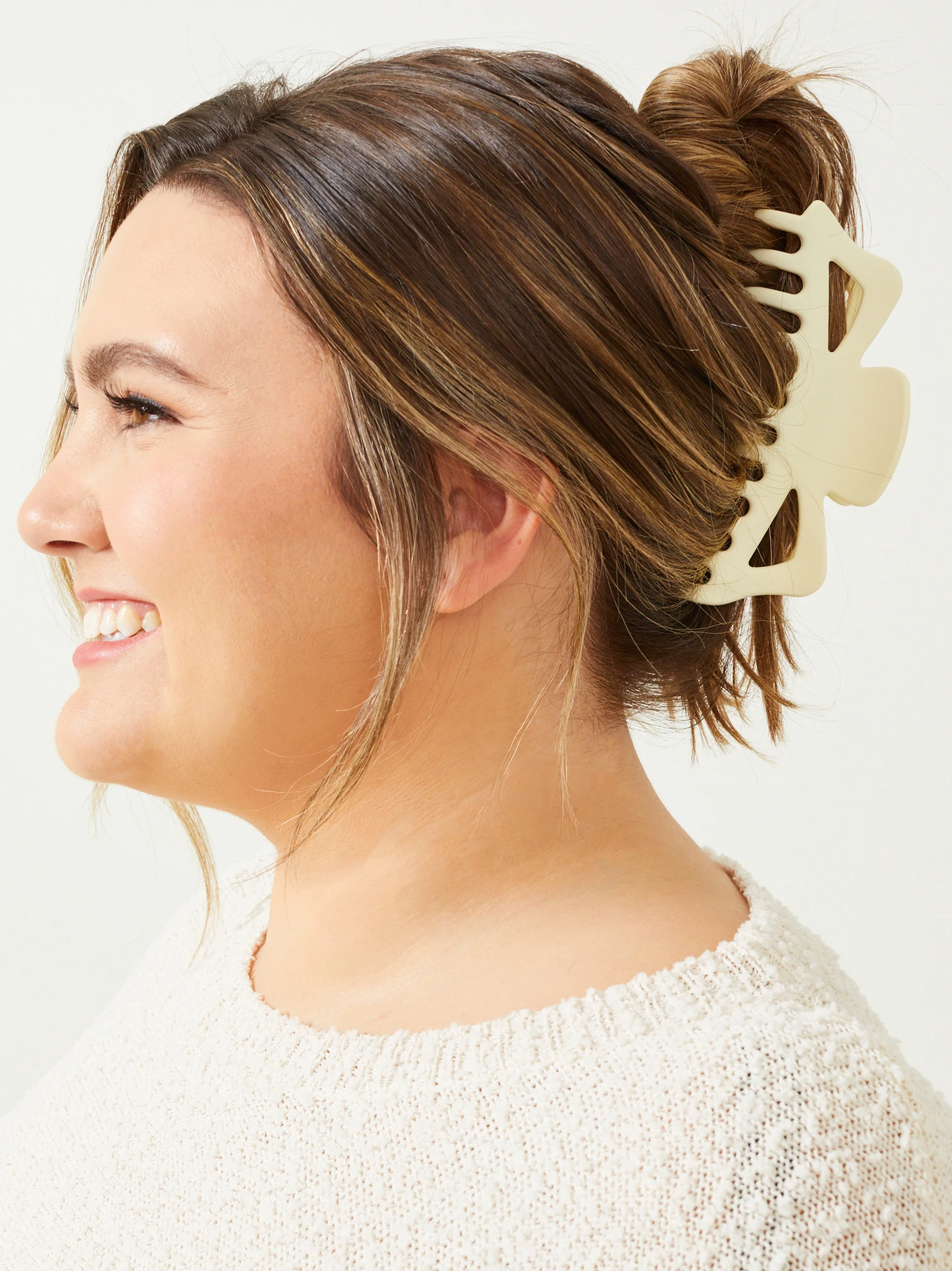 Accessorize with this timeless claw clip! Featuring a versatile and relaxed look, this neutral hair accessory has a matte soft touch. Pull your flyaways back, and show off your stunning facial features!
