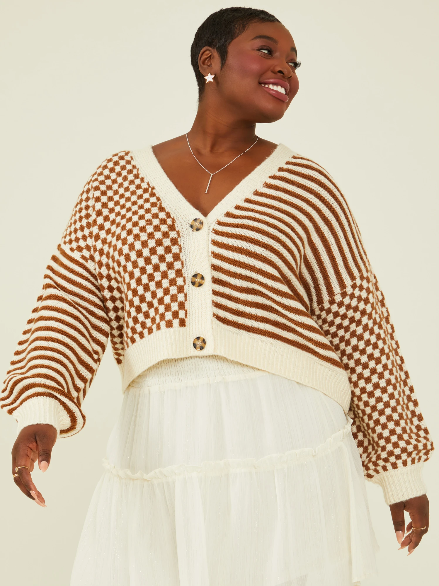 - Knit texture, Striped & Checkered, Neutral buttons