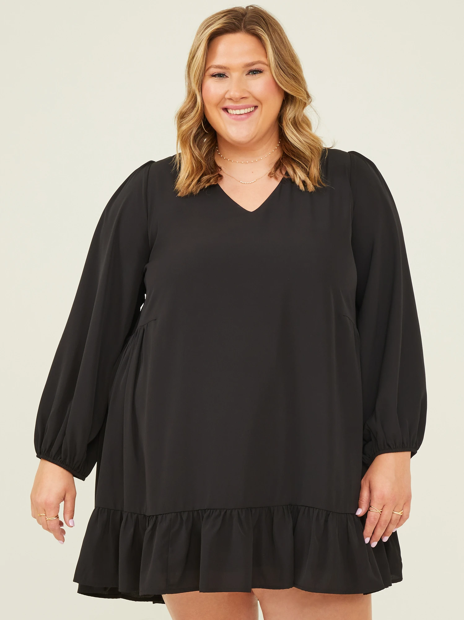 - V-neck, Puff sleeves, Tiered hem, Cinch detailing on hips & shoulders