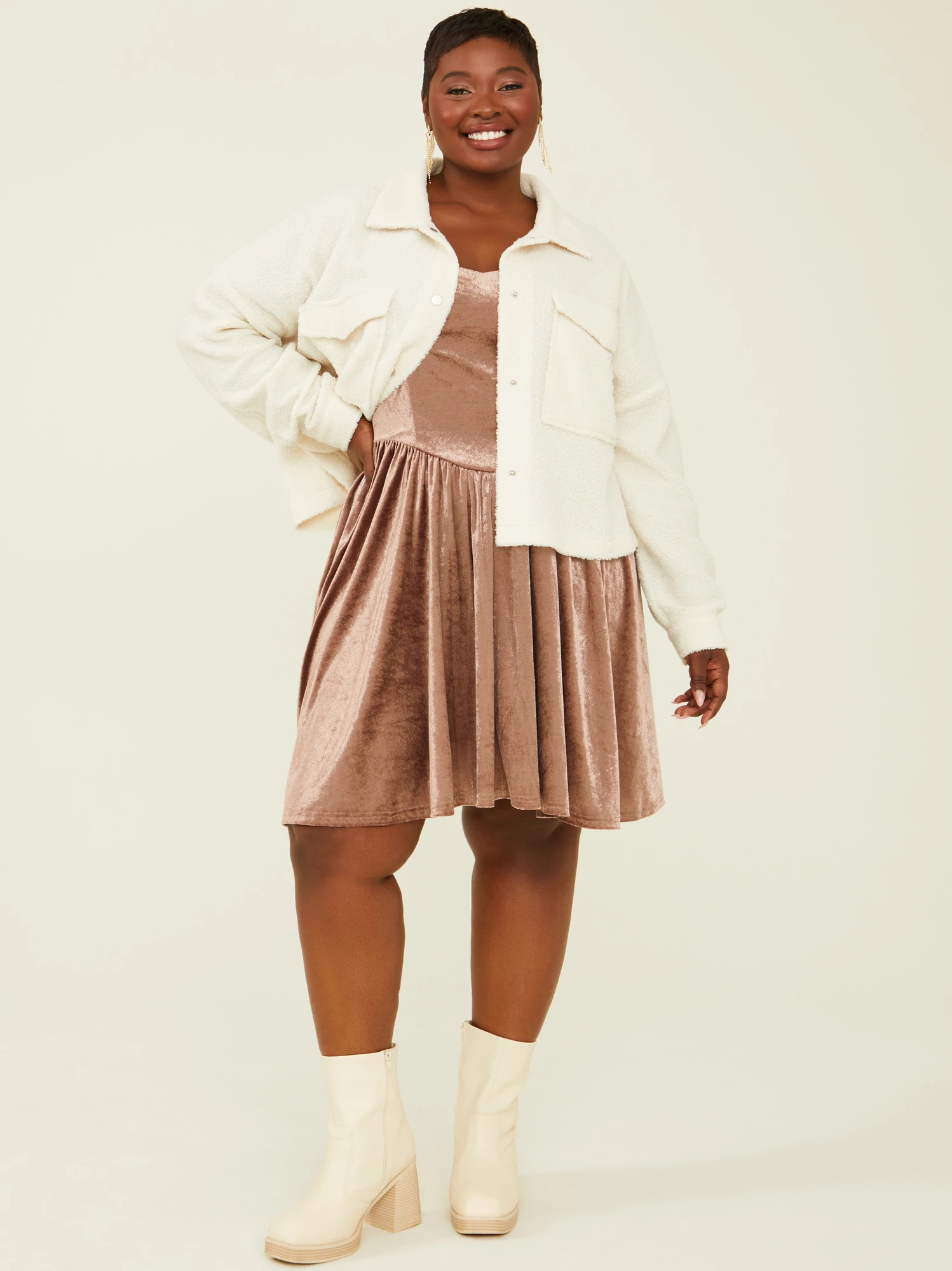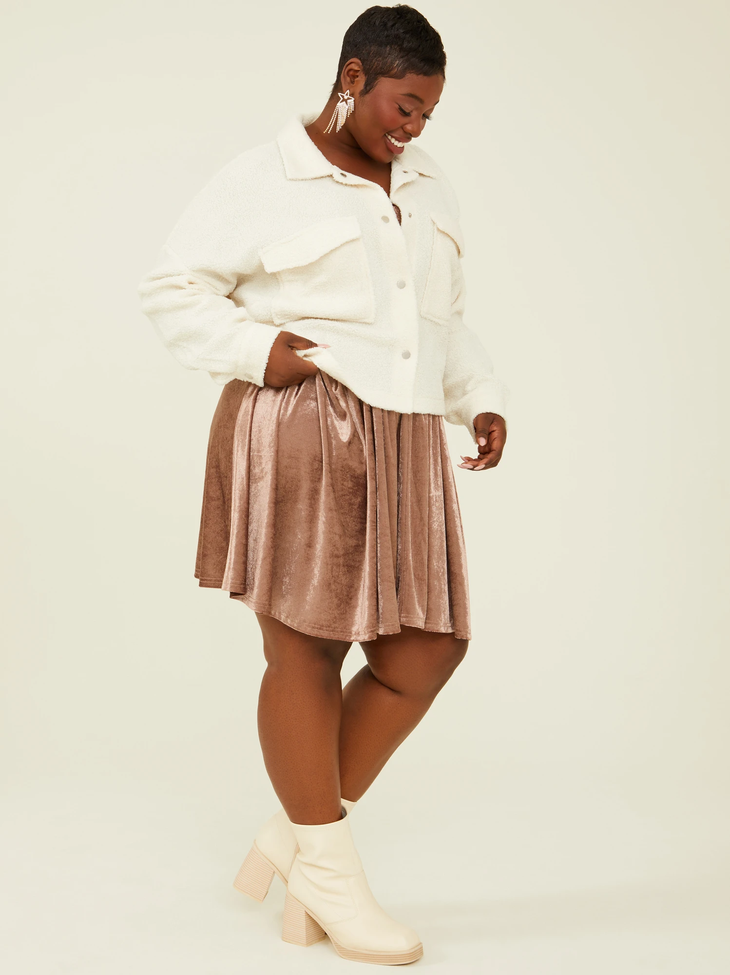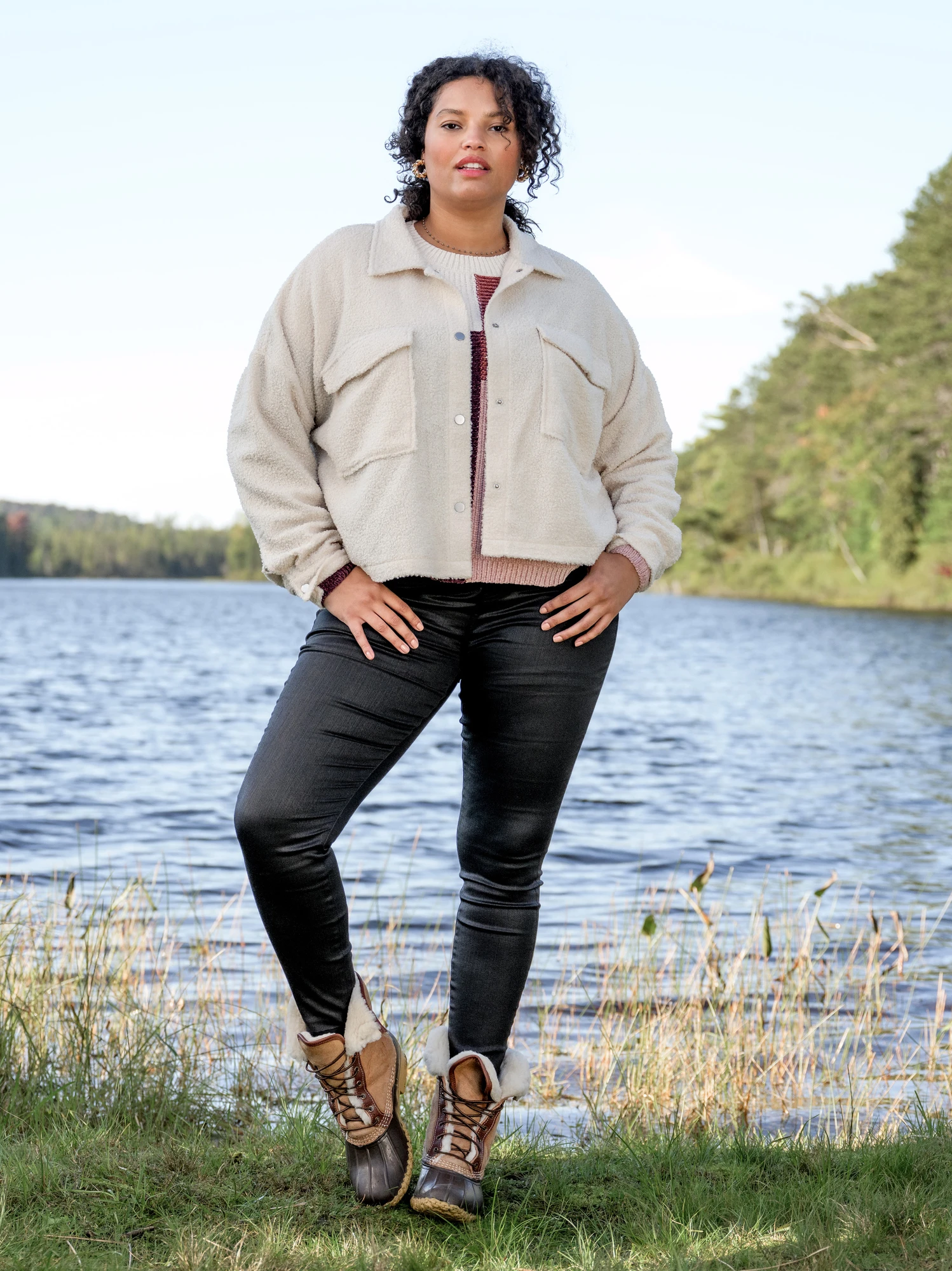 With meticulous attention to detail, this shacket features a soft sherpa touch that adds a layer of texture and practicality to your ensemble. Cropped for a fashion-forward look, it pairs beautifully with your favorite jeans or leggings, making it a versatile addition to your wardrobe. The cozy fit ensures you stay warm without compromising on style.