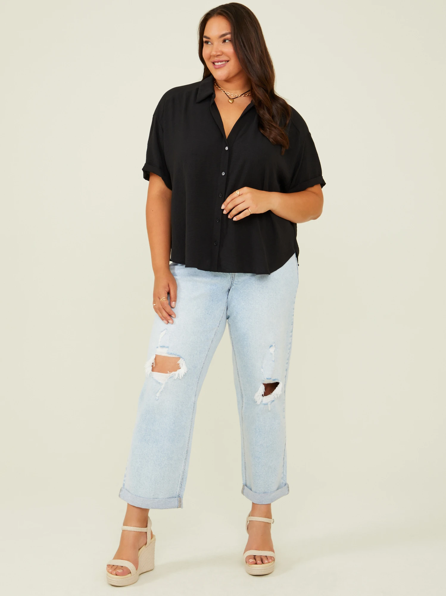 Every girl needs a breezy buttondown in her wardrobe, and our Fallon Top is the perfect pick! From the collared neckline to the cuffed sleeves, this buttondown is complete with a pleated backside for a flattering fit. Oh-so versatile and easy, this top can be dressed with anything from your favorite denim bottoms and sneakers to your favorite feminine skirt and booties!