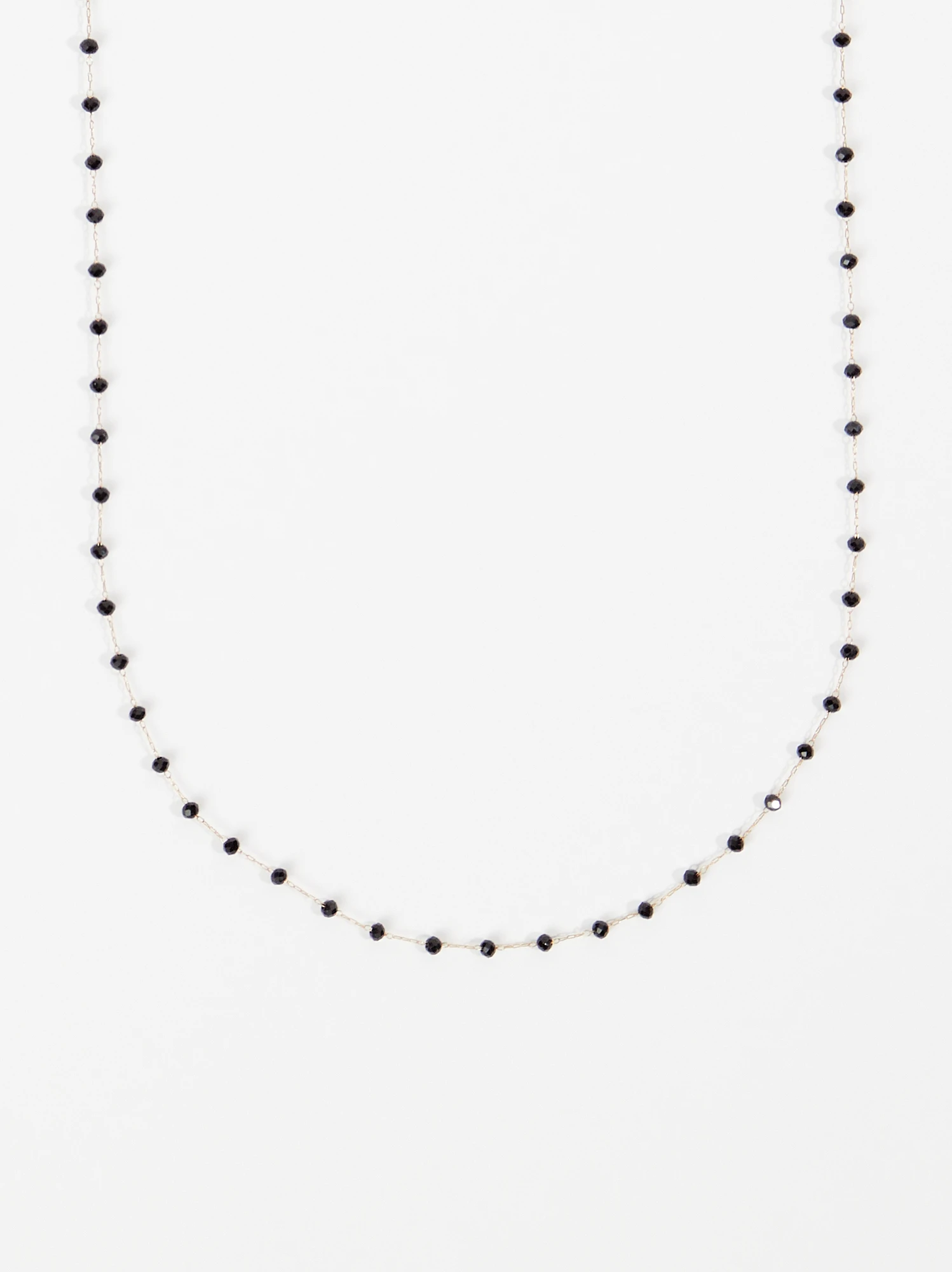Elevate your jewelry collection with this dainty choker necklace adorned with exquisite black glass beads. This versatile piece is perfect for layering with other chains or wearing alone, allowing you to create your own unique look.