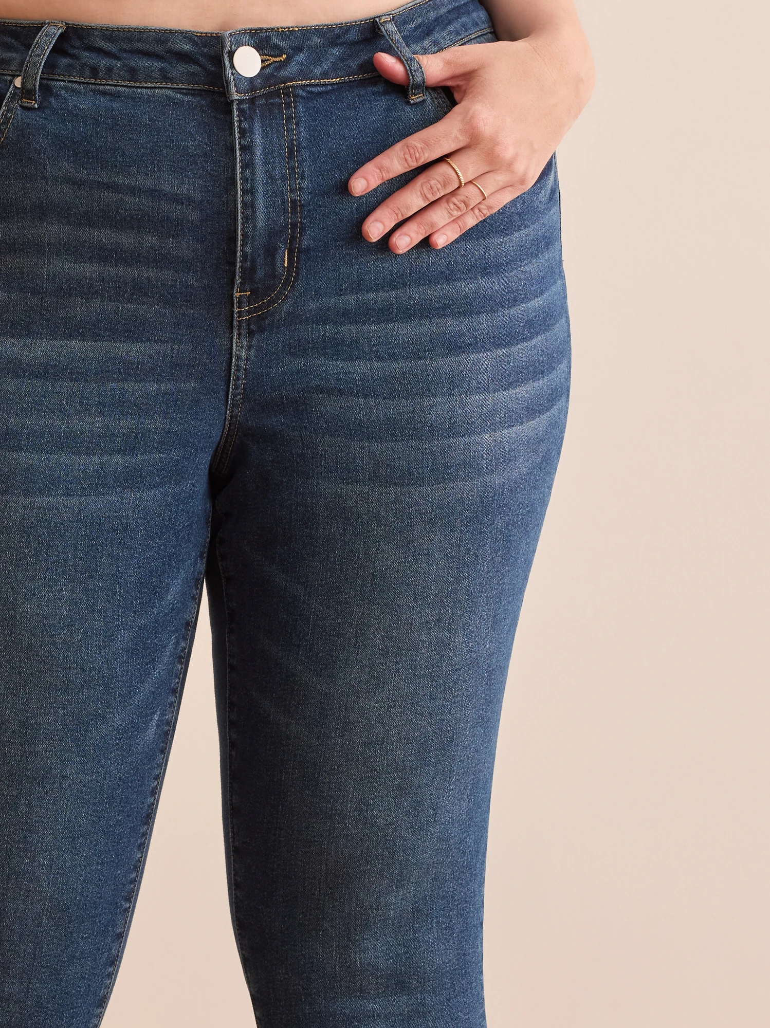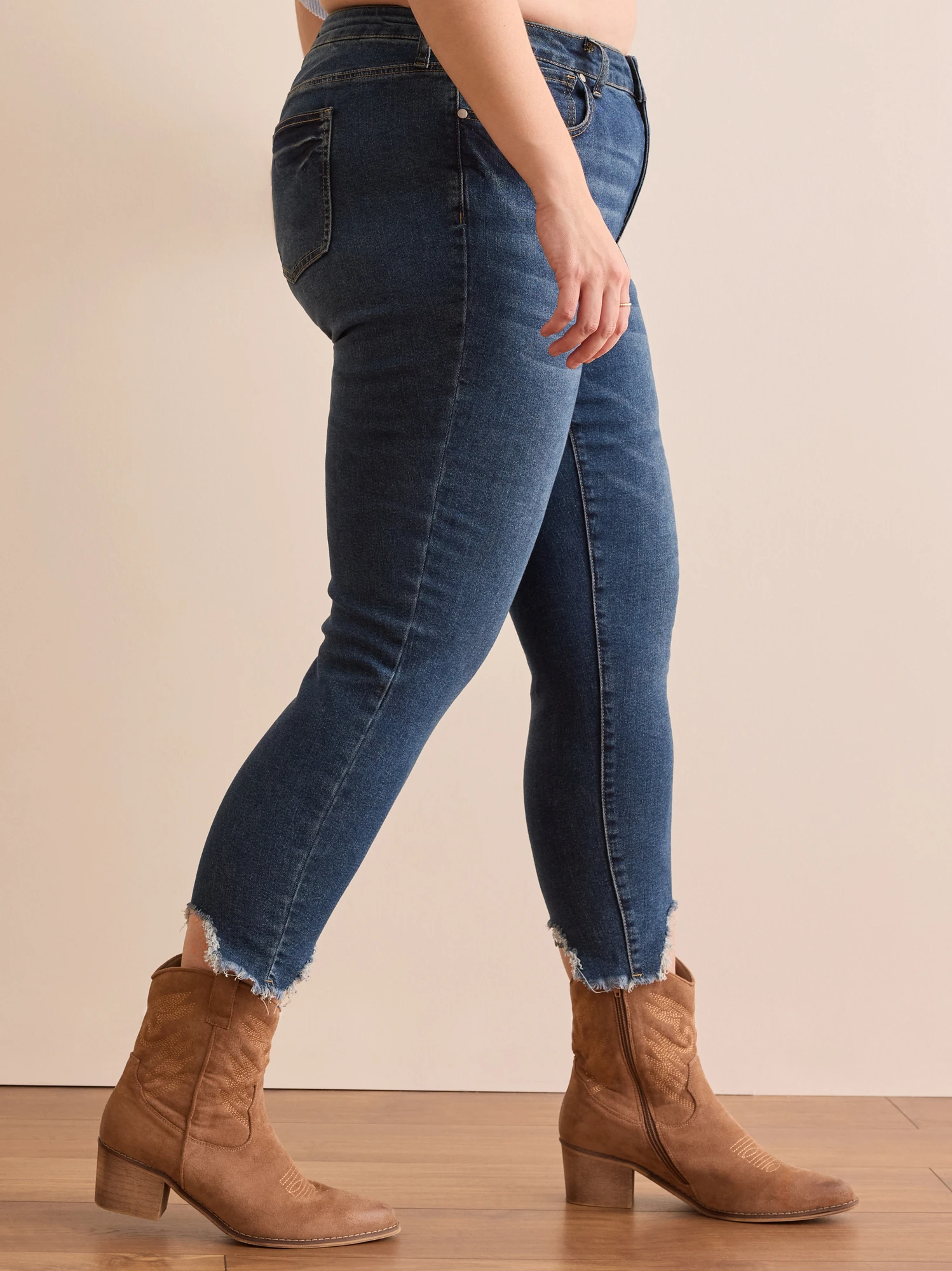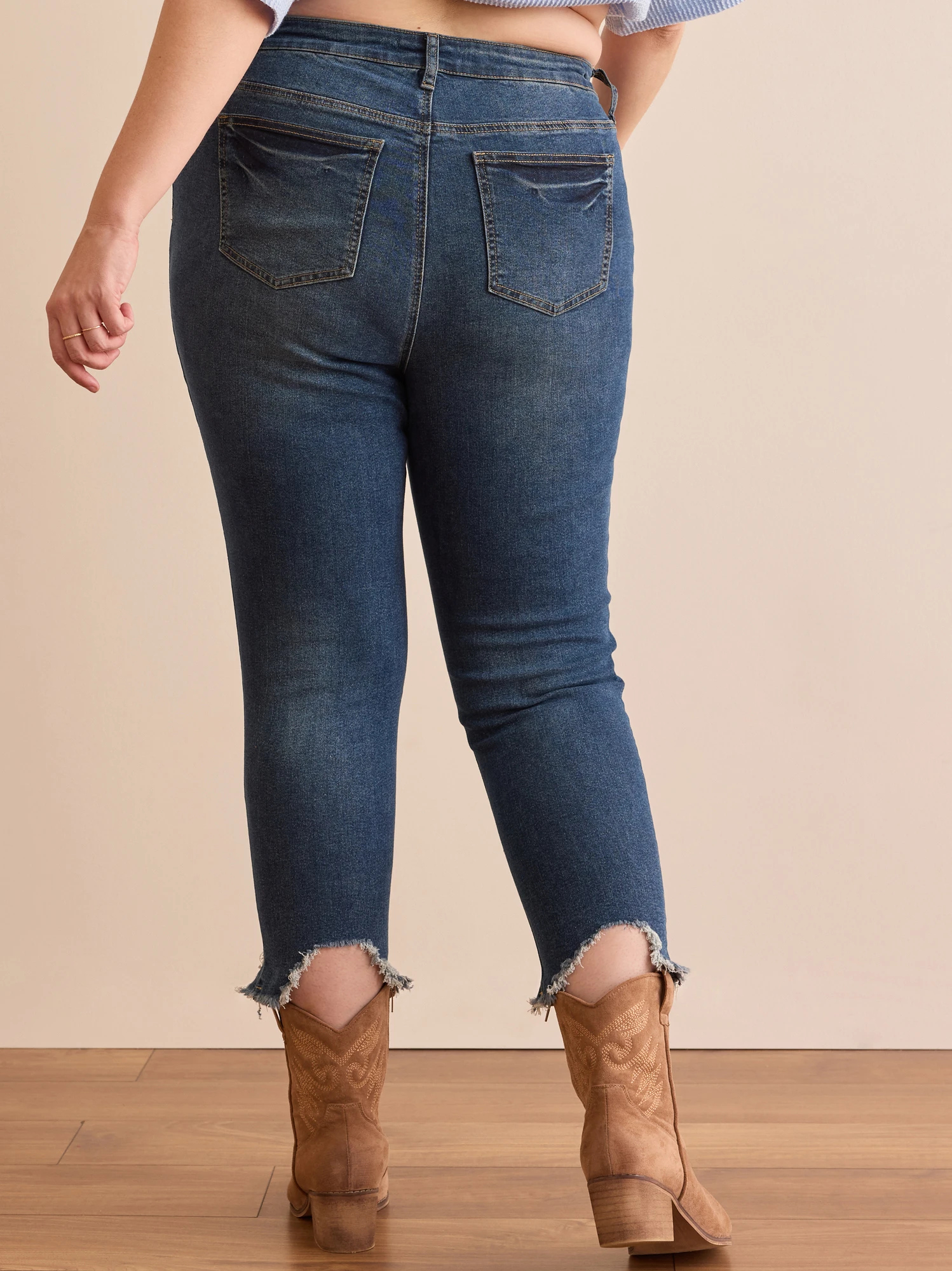 Our Incrediflex waistband features customizable inner support that conforms to your body for a fit that is truly tailored to your unique shape! These stretchy high-rise jeans are the perfect flattering fit and a wardrobe must have for any gal and any occasion with their unique shark bite raw edge hem and retro vintage wash.