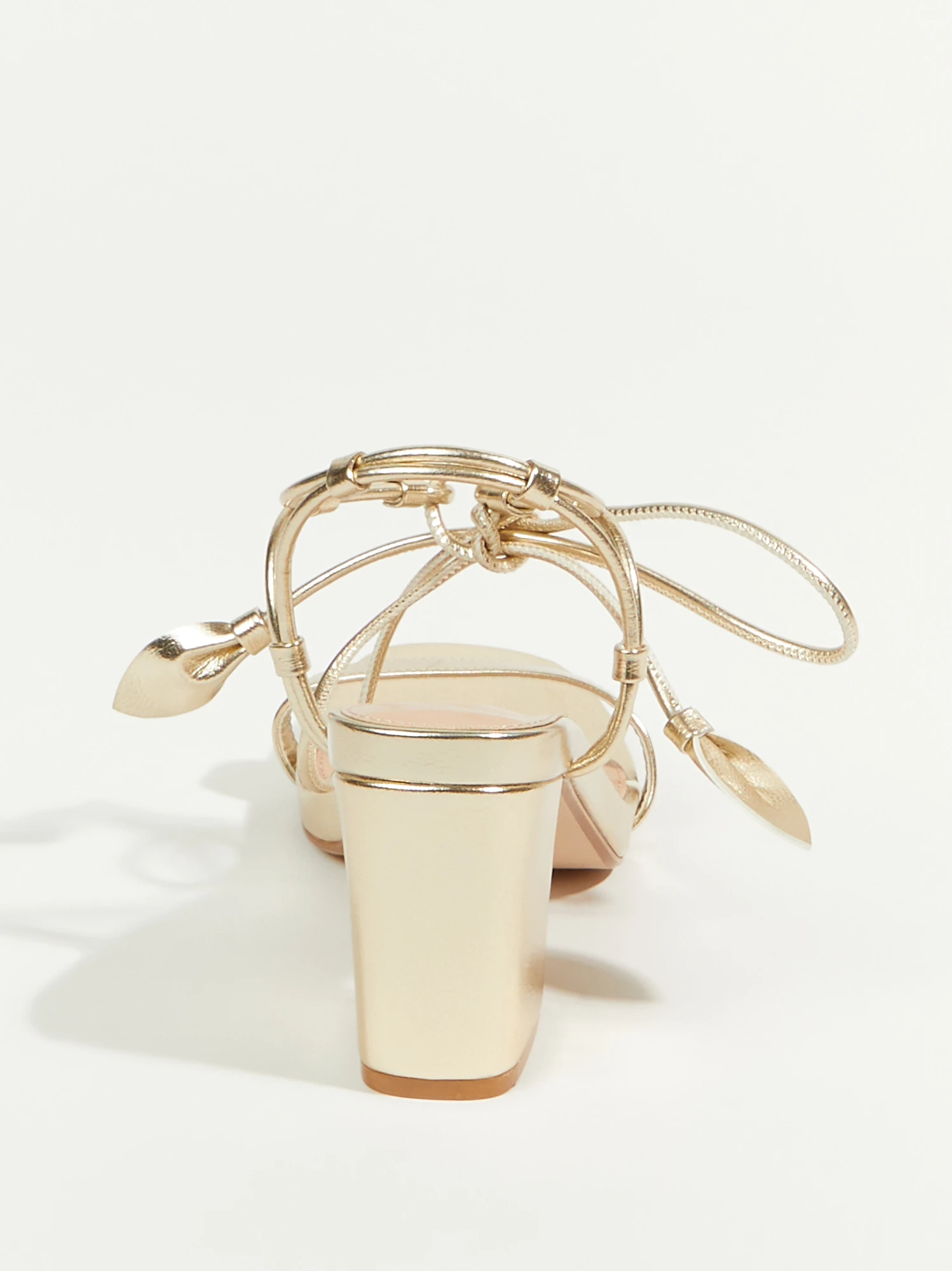 Crafted with a lustrous gold shine, these strappy heels add a touch of luxury to any ensemble, making them the perfect choice for special occasions and everyday wear alike. The wrap-around design not only provides a secure fit but also adds a hint of flirtatious allure to your look. A true staple for the season, these heels seamlessly blend classic and contemporary elements, ensuring that they will remain a go-to option in your footwear collection for years to come!