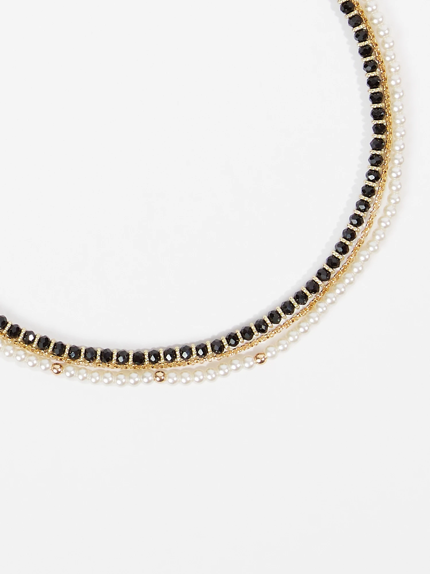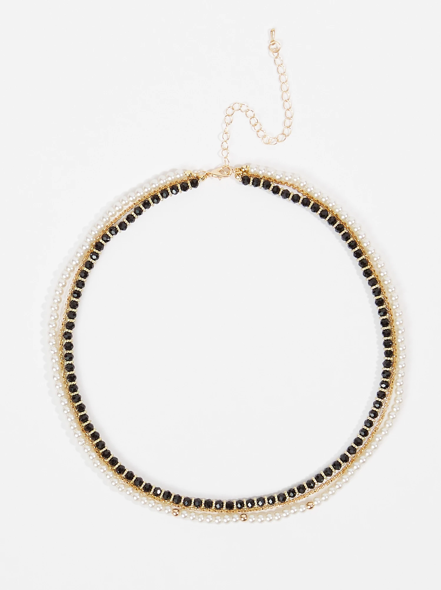 The pearls and glass beads add a touch of classic charm and captivating beauty, making this necklace perfect for both special occasions and everyday wear. The combination of textures and materials creates a harmonious blend that captures attention and complements any outfit, adding a touch of timeless elegance to your look.