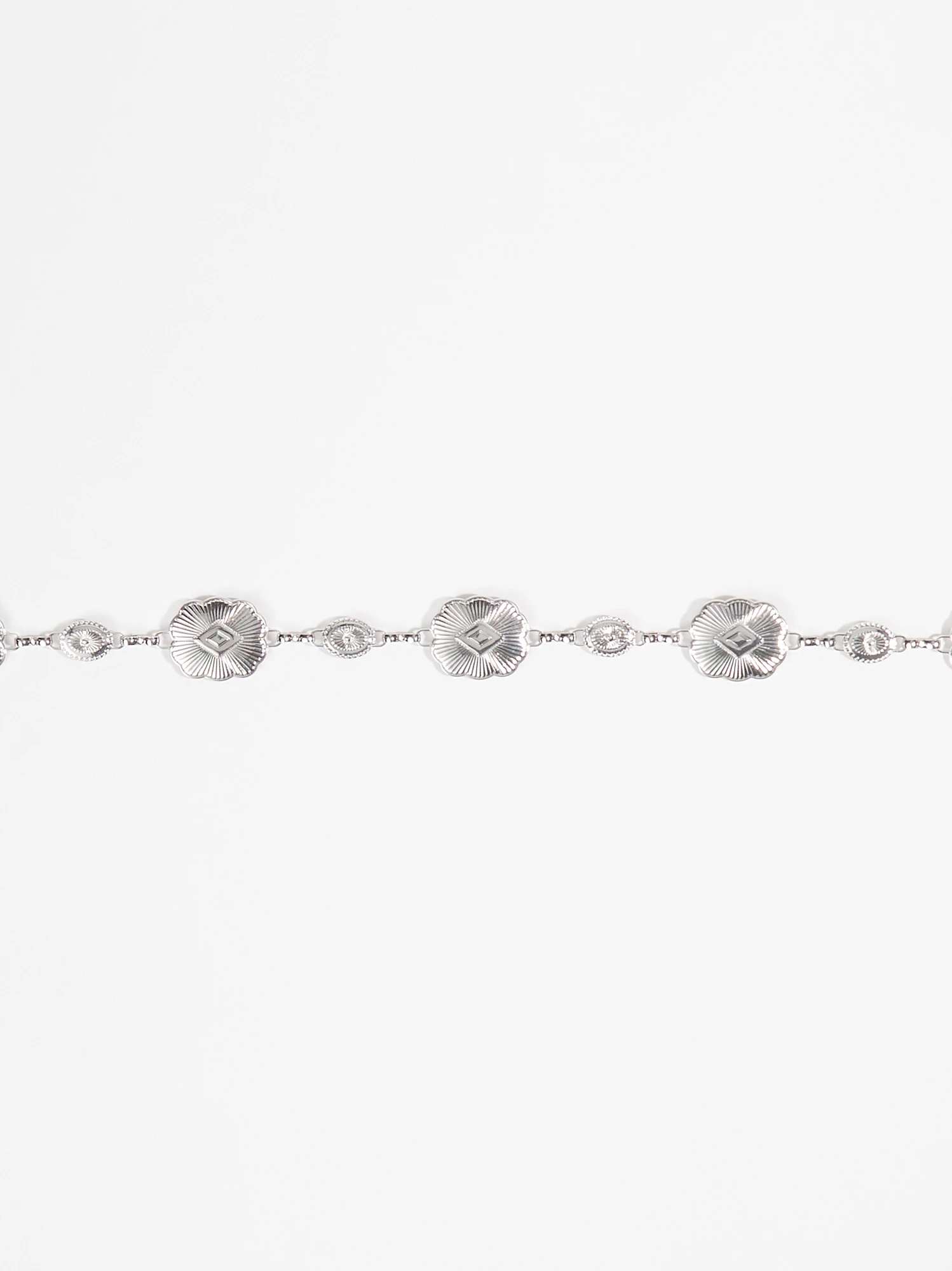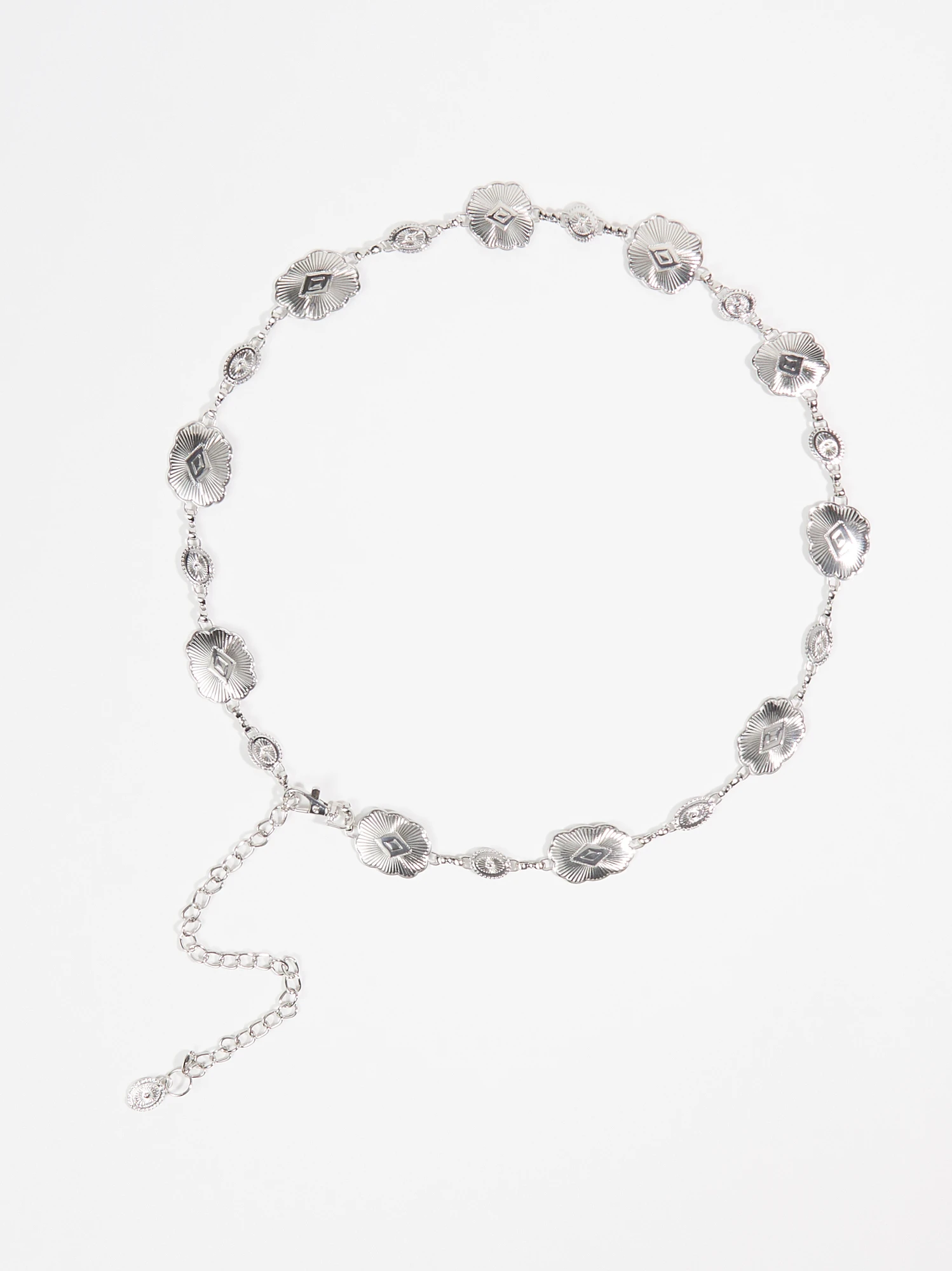 This bohemian-inspired belt is an eye-catching essential! The dainty medallion chain and glistening hardware make this such a unique accessory. Layer effortlessly with your simple sundress for a pop of rustic shine.