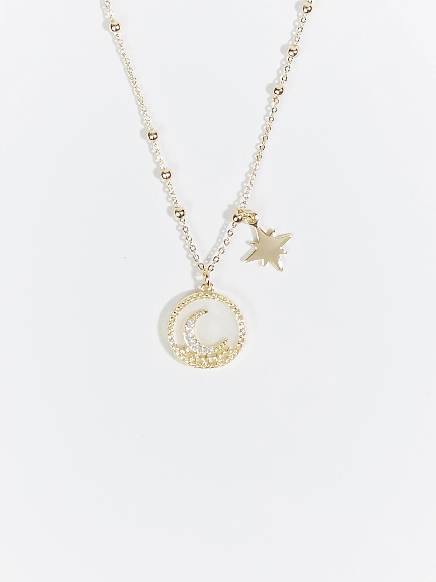 This beautiful accessory will take you to another galaxy with its special crescent moon and star pendants! A shimmering pop of crystal rhinestones add just the right amount of shine to this dainty necklace. Easily dress it up or keep it casual depending on your occasion.