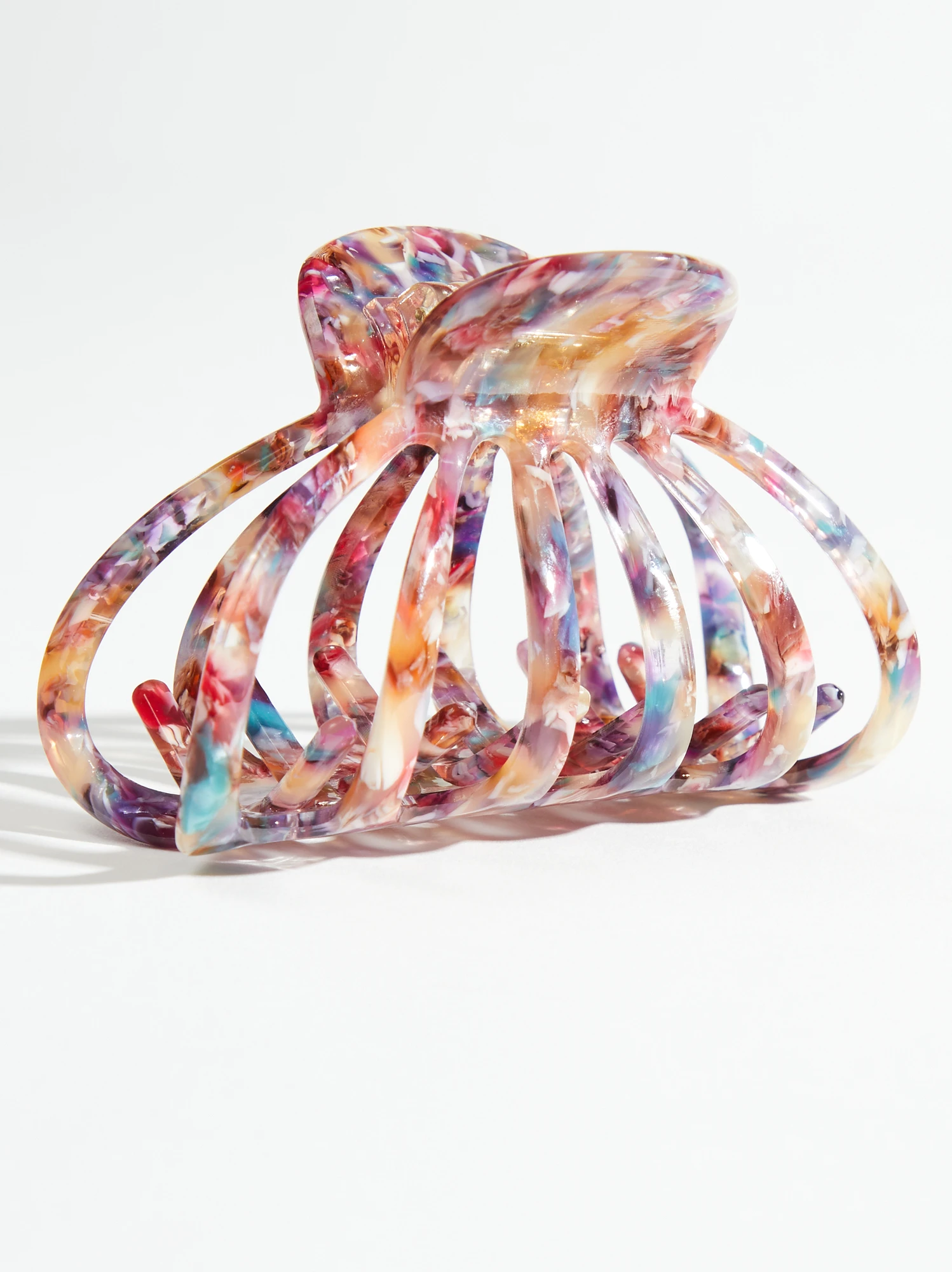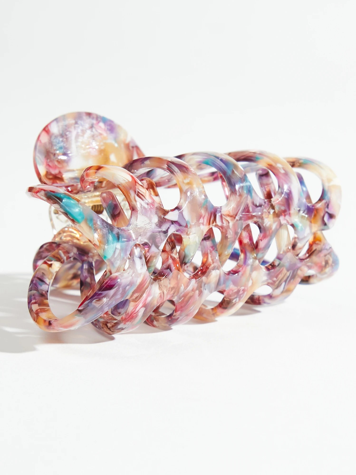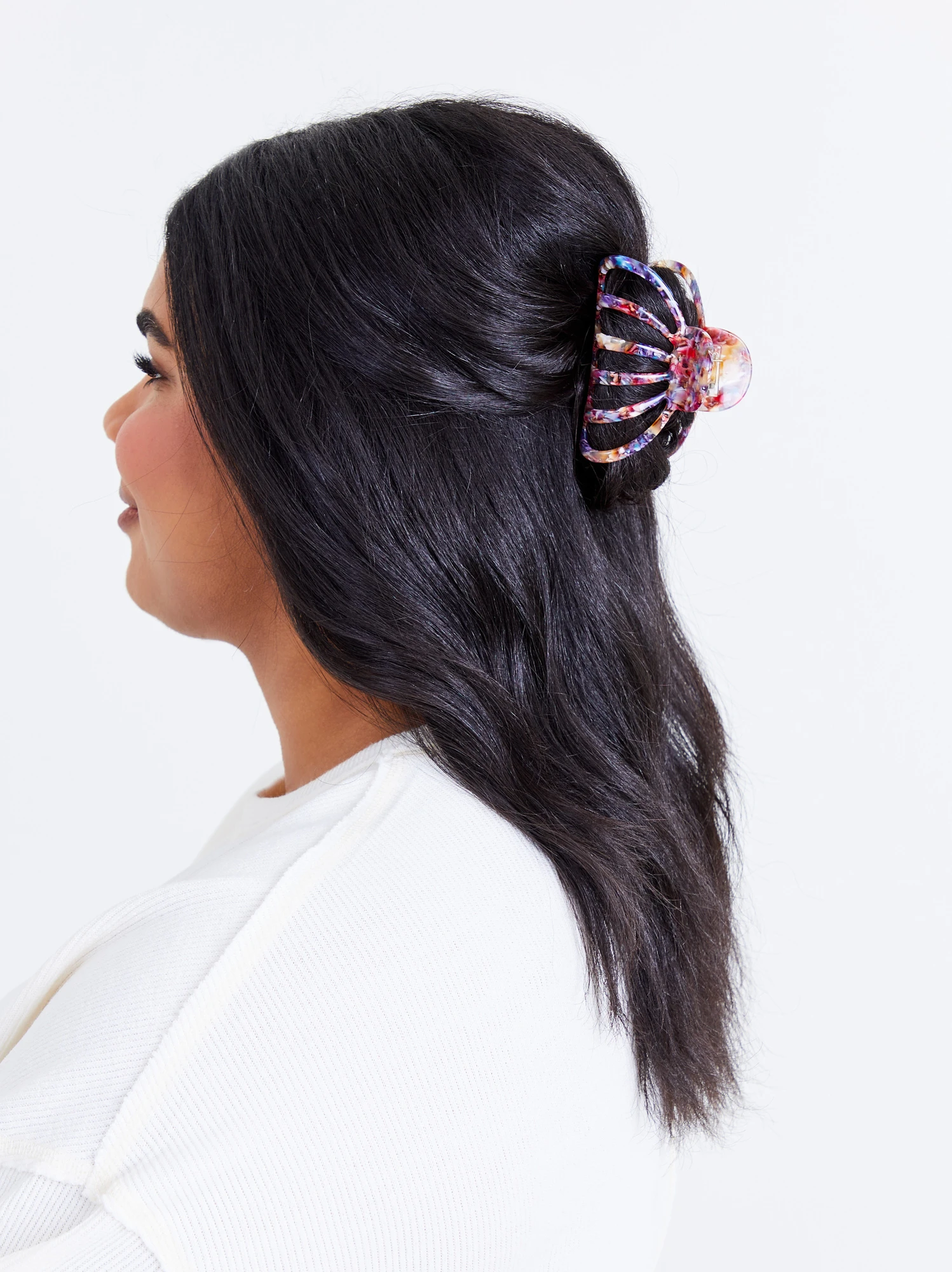 Tame your luscious locks with this lively, multicolored marble printed claw clip! The unique shape is both functional and cute – easily pull your hair back to show off your fresh face.