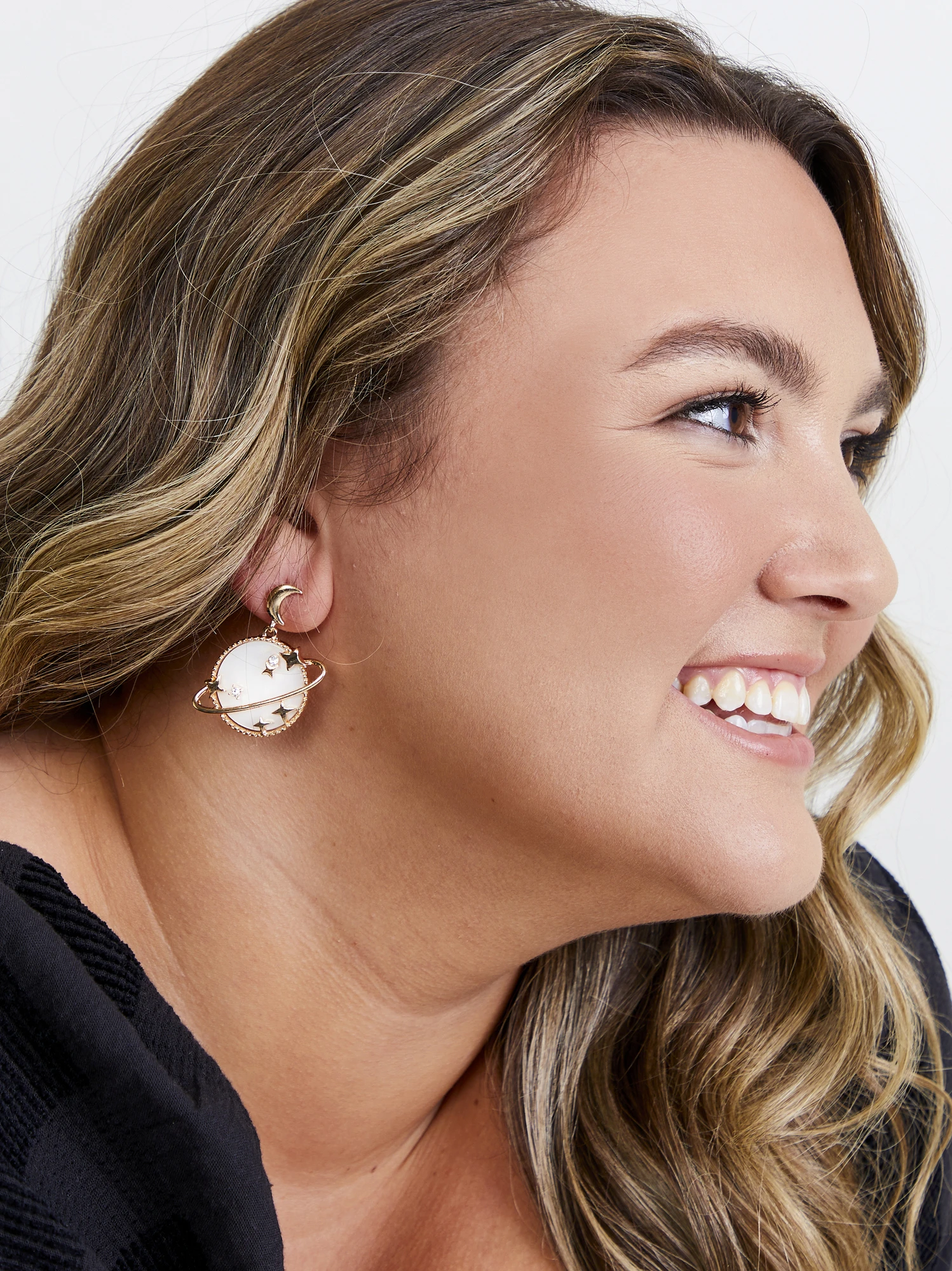 These celestial earrings are simply out of this world! From the iridescent white background to the gold stars and crescent detailing, you can’t go wrong with the intricate and playful design for a lively look.