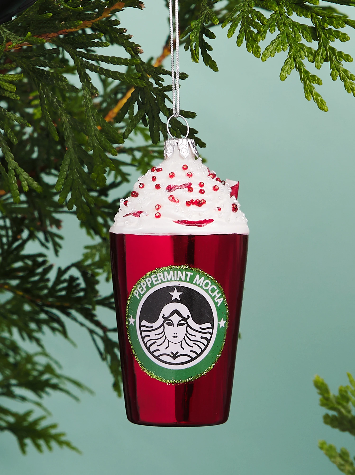 Indulge in the delightful spirit of the holidays with the peppermint mocha Christmas tree ornament, capturing the essence of a cozy winter treat and adding a touch of festive joy to your decorations.