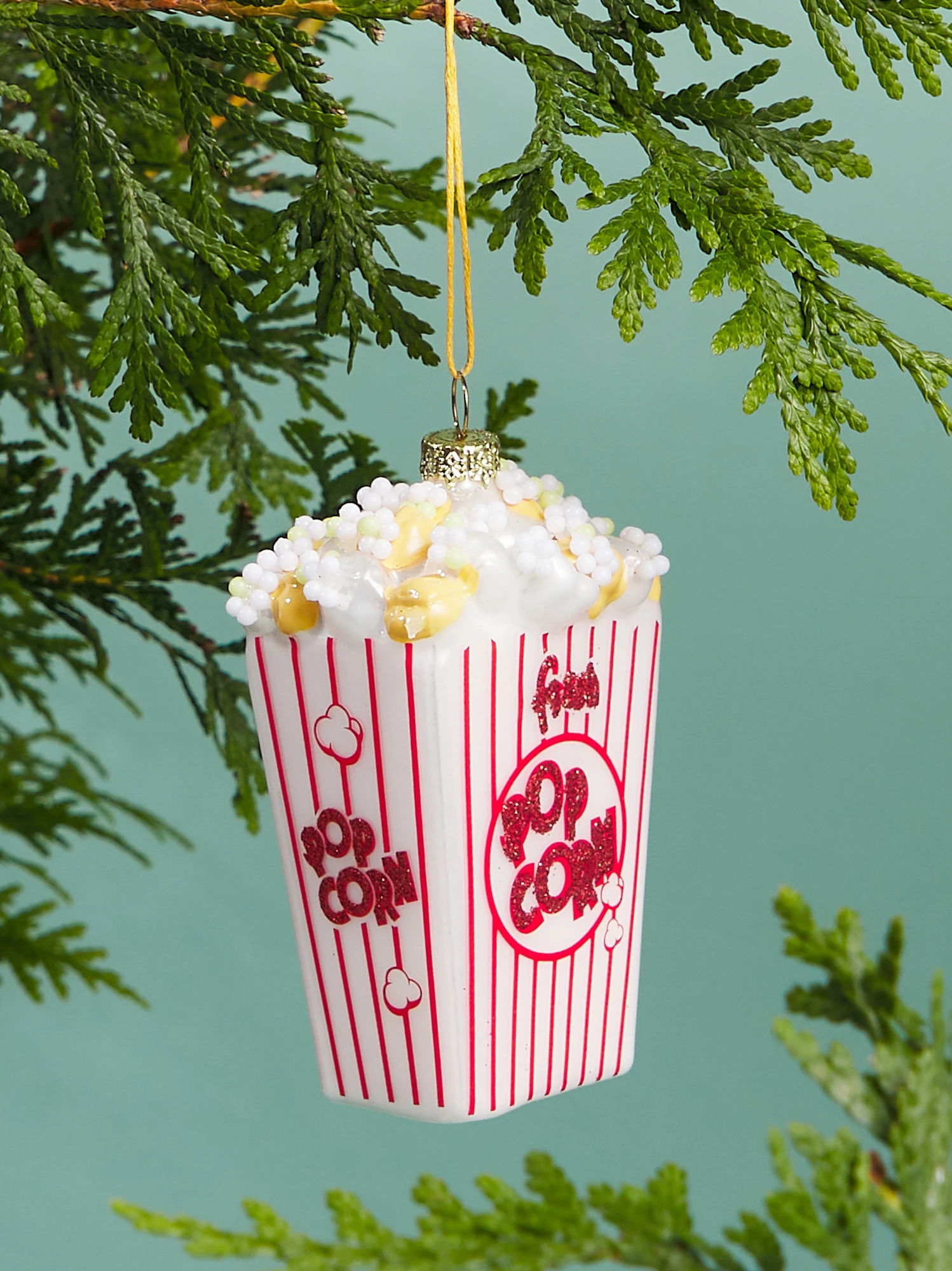 This adorable ornament captures the cozy nostalgia of movie nights and holiday gatherings with its timeless freshly popped snack! This unique popcorn bucket decoration is a fun and unique addition to your ornament collection.
