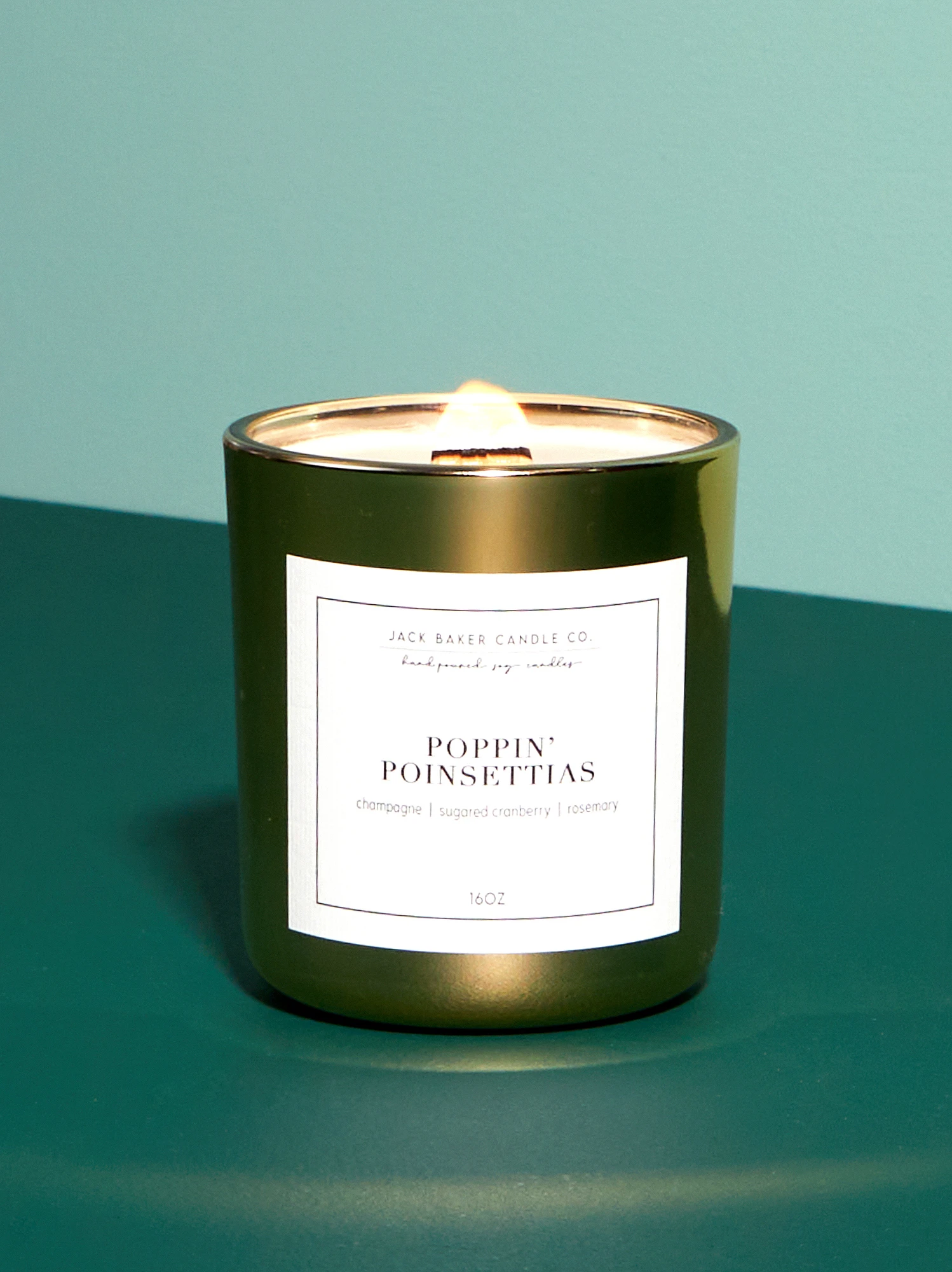 Light up your holiday season with this festive holiday-inspired candle! Let the enchanting aroma of champagne, sugared cranberry, and rosemary fill your space with warmth and cheer. As you light the crackling wooden wick, the soothing sound of a gentle fire will transport you to a cozy winter evening by the fireplace.