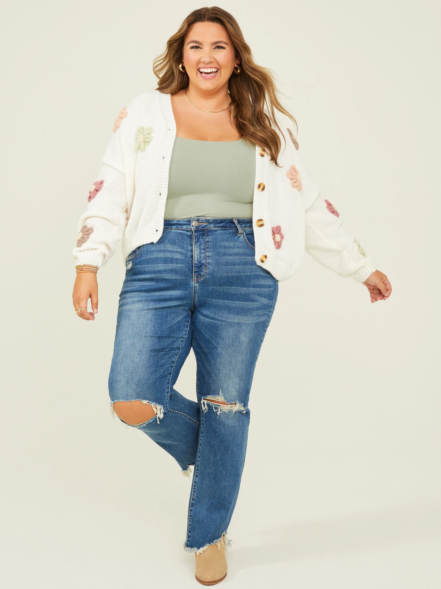 This dreamy cardigan sweater features a delightful blend of classic elegance and playful charm! The lightweight and breathable fit is adorned with colorful and feminine floral appliques to embrace your unique style. Designed to elevate any wardrobe, this knit cardigan adds a touch of warmth and coziness to your favorite bodysuit or graphic tee!