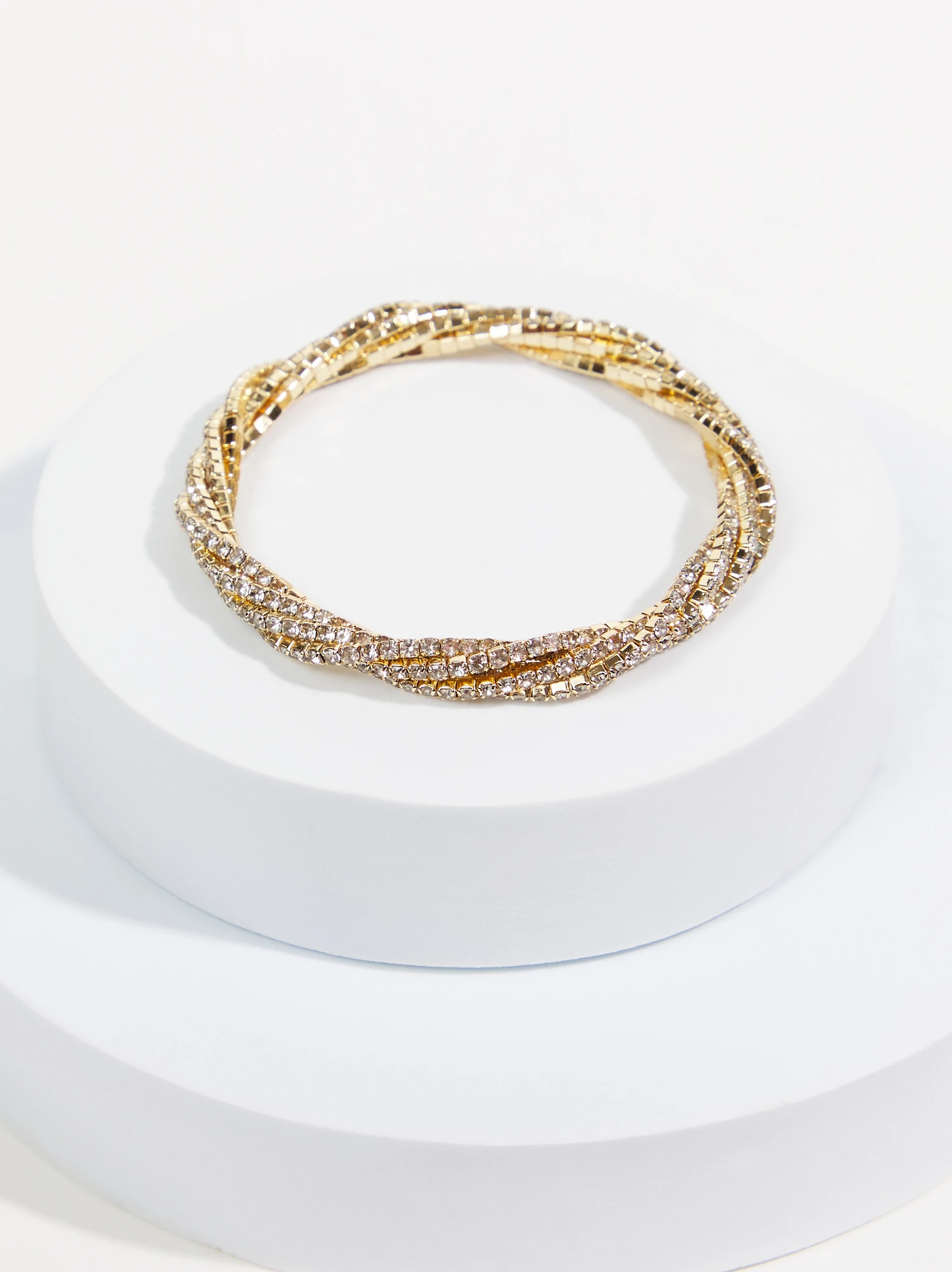 Adorn your wrist with brilliance and elegance, this stunning twisted bracelet features all-over rhinestones that catch the light with a dazzling radiance. The stretchy design ensures a comfortable fit, making it easy to slip on and off without compromising on style.