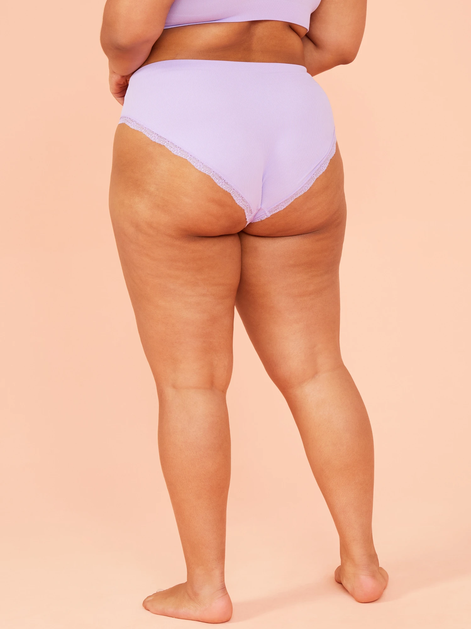 Perfect for all-day comfort and style, this cheeky coverage undie is ideal for lounging or wearing under dresses. This undie is designed to provide maximum comfort and support with its seamless construction and stretchy, breathable fabric. The cheeky style is met with a special ribbed texture, while the lace trim adds a touch of elegance and femininity.