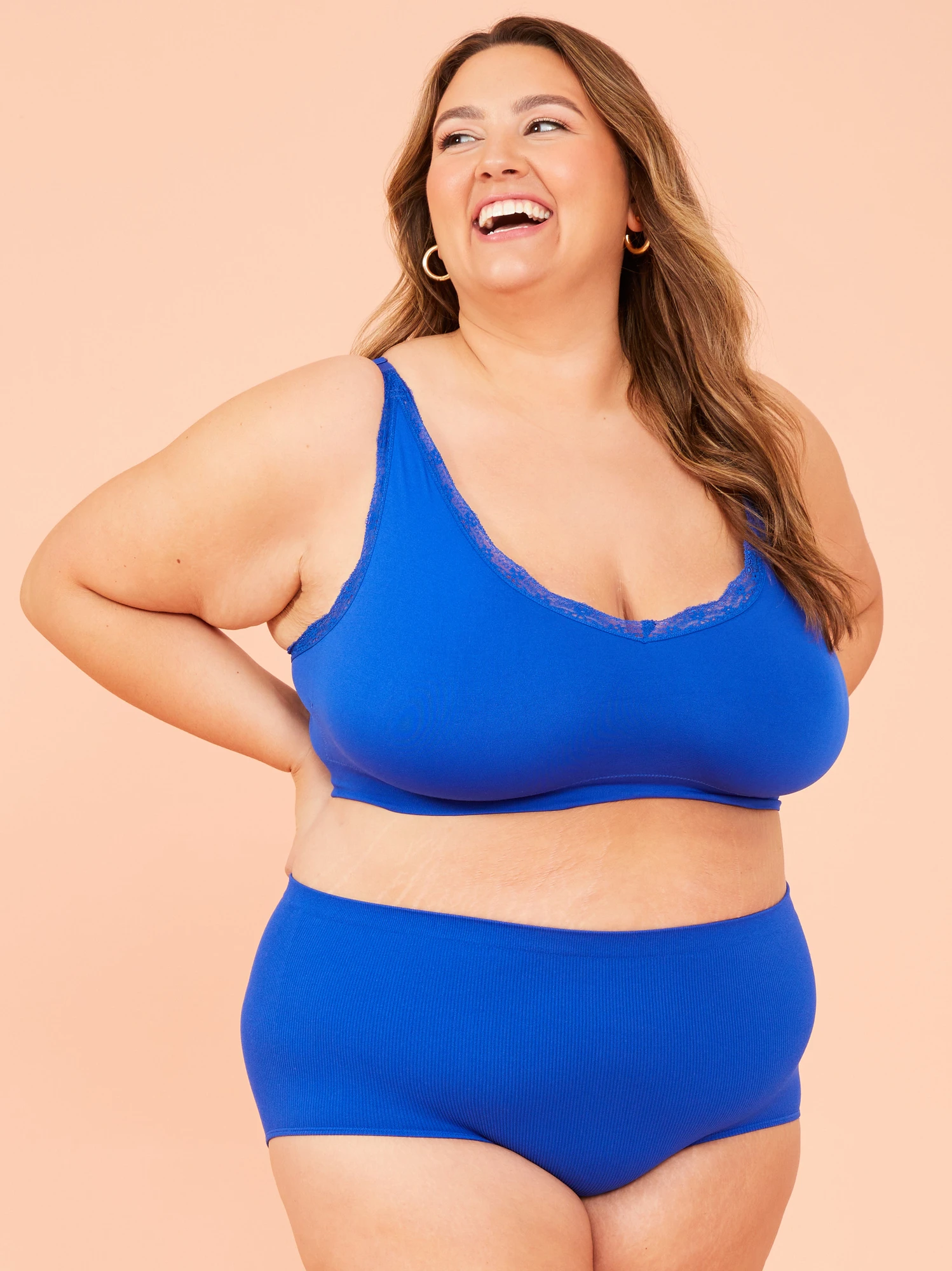 Perfect for all-day comfort and style, this medium coverage hipster undie is ideal for lounging or wearing under dresses. The seamless design is made with a soft and stretchy fabric that moves with your body and is met with a special ribbed texture. The medium coverage fit provides extra support and comfort. A gentle stretch that won’t dig in.