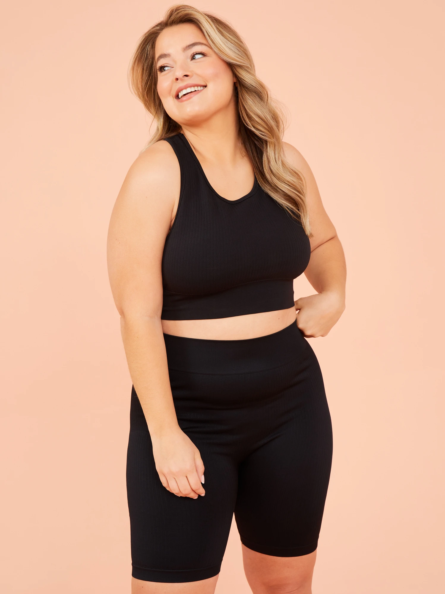 From lounging to light workouts, and anywhere in between, this longline sports bra is here to keep you feeling supported and comfortable. The seamless design is made with a soft and stretchy ribbed fabric that moves with your body. Pair with the Seamless Ribbed Biker Shorts as a top or underneath a tee as a bra.