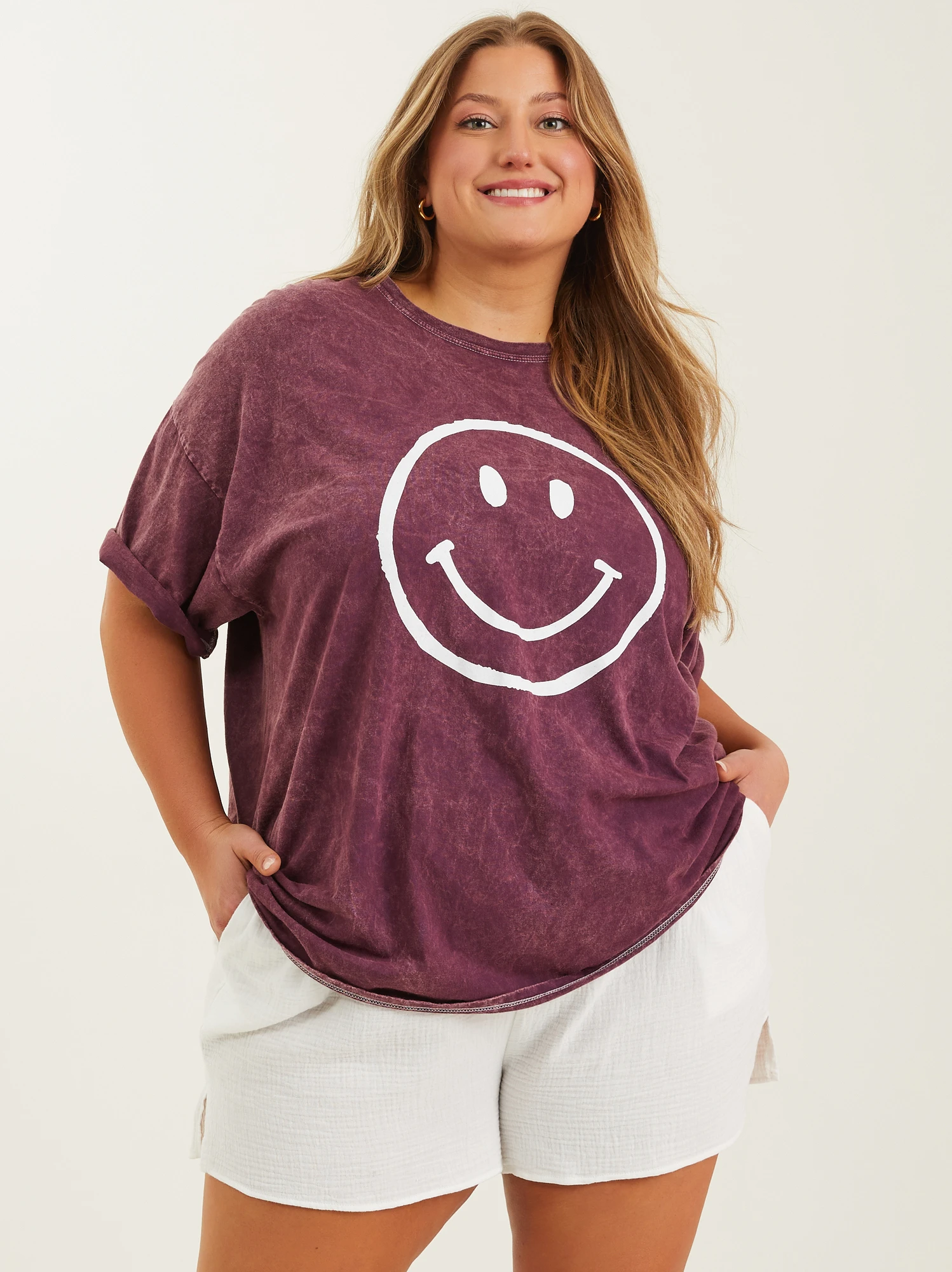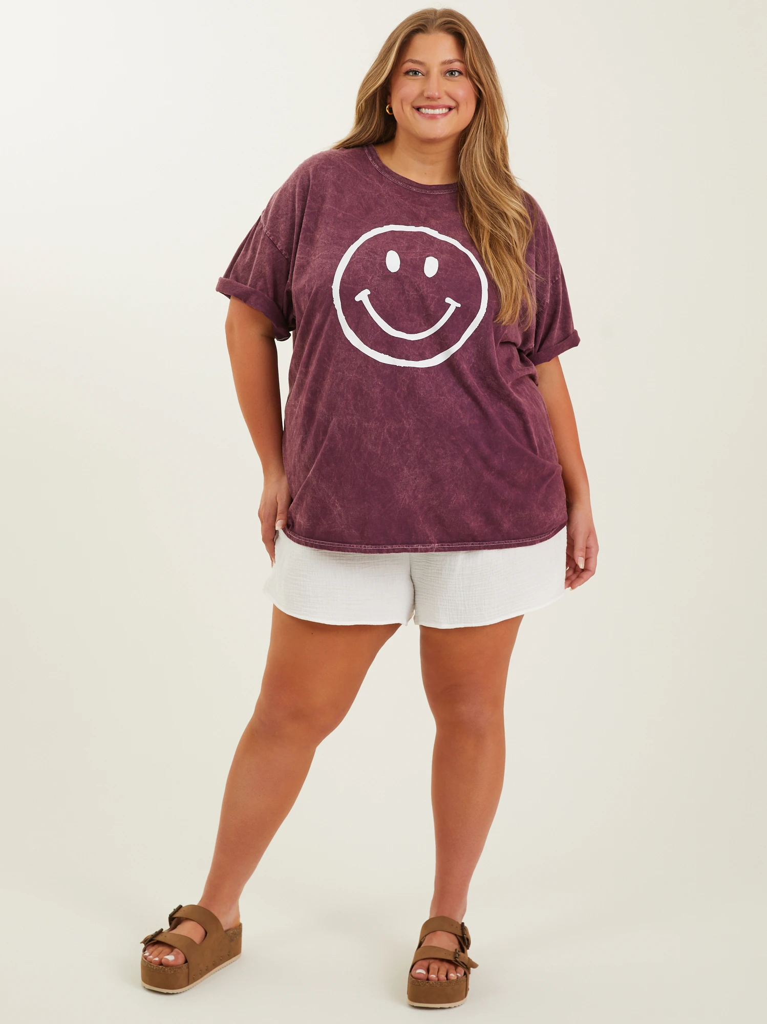 This dreamy relaxed cotton tee is sure to make you smile! The lived-in, washed look is oh-so soft and perfectly breathable. The oversized cut is ideal for layering with sweaters, cardigans, or shackets. Fun and lively, add some happiness to your everyday style.