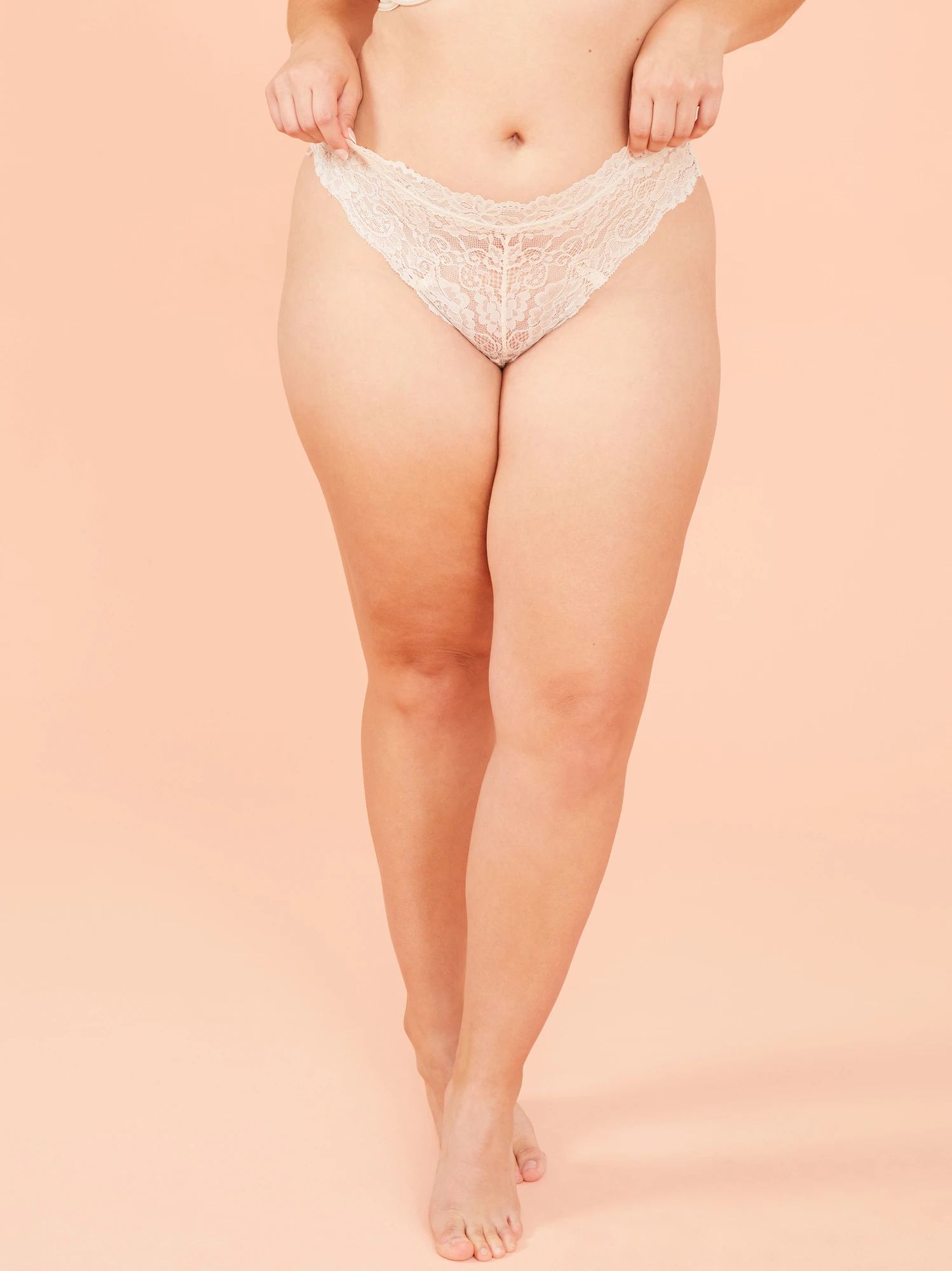 Made with a delicate and feminine stretch lace fabric, this cheeky undie has a soft and comfortable fit that hugs your curves in all the right places. The cheeky coverage and high rise cut allows for any occasion wear – elegance met with comfort. The soft and stretchy fabric moves with you and lays beautifully under any outfit.