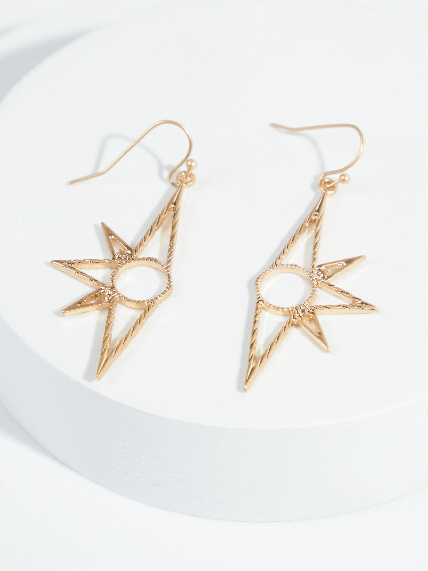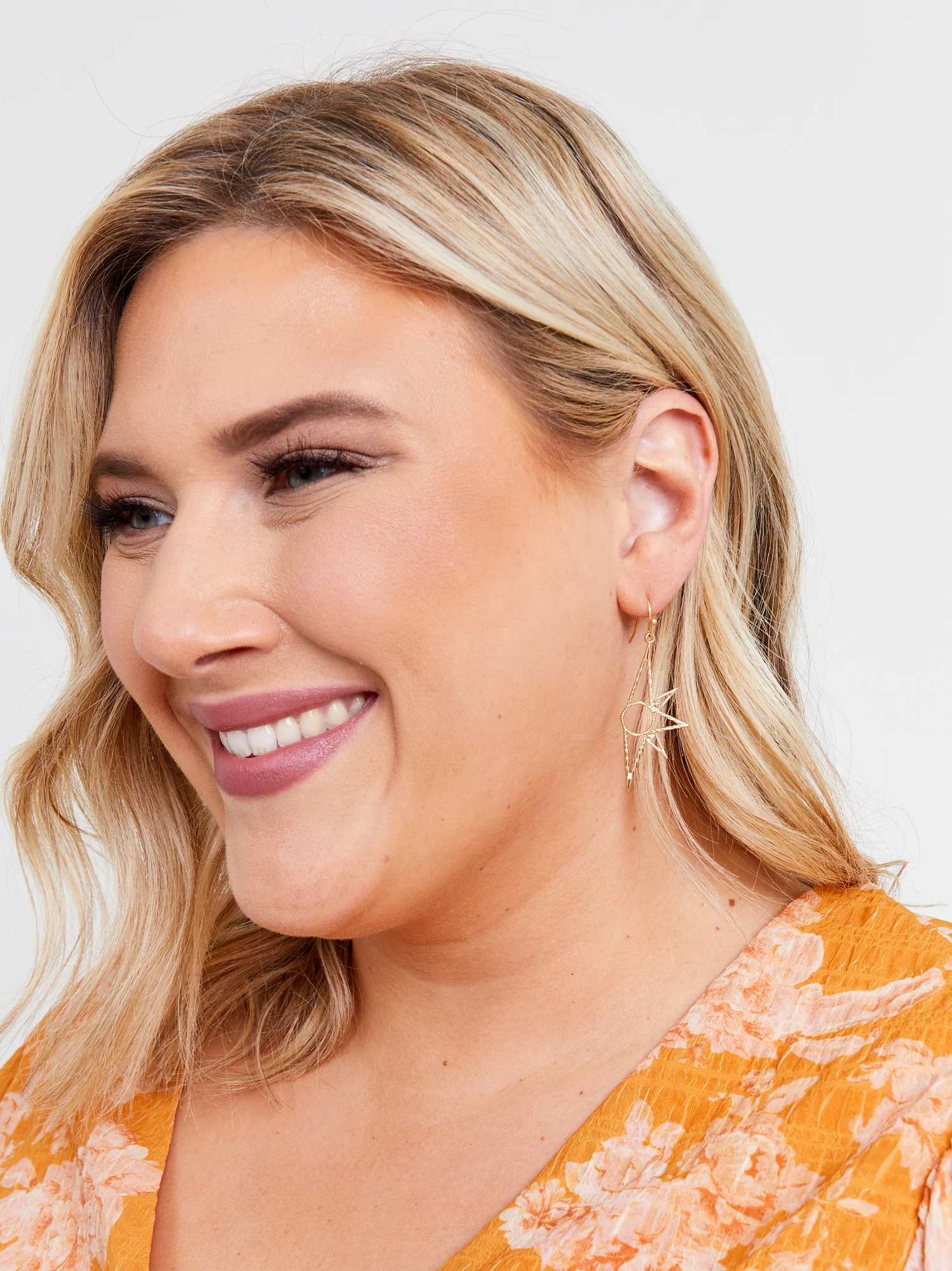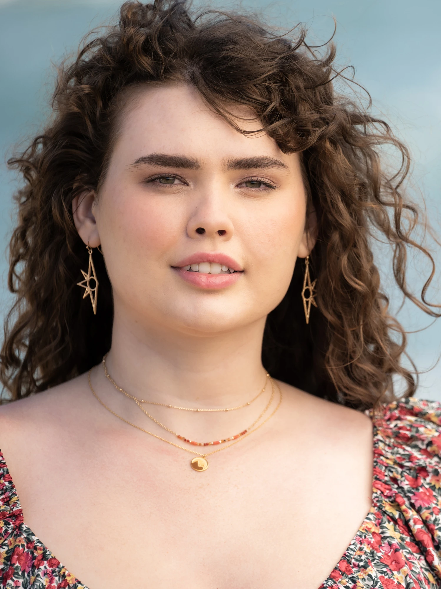 These worn gold celestial earrings make up a shining star! A dreamy, bohemian vibe that easily pairs with any look. Truly one-of-a-kind – just like you!