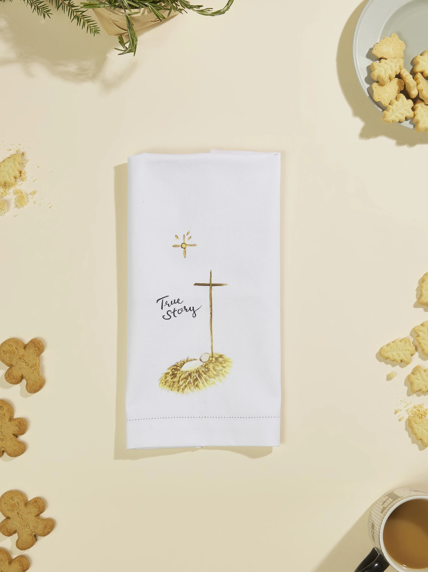 With a delicate hand-painted depiction of the nativity scene, this tea towel serves as a gentle reminder of the miraculous event that lies at the heart of the holiday. Bring the true story of Christmas to life in your home and let this decoration be a source of inspiration and reflection during this special time of year.