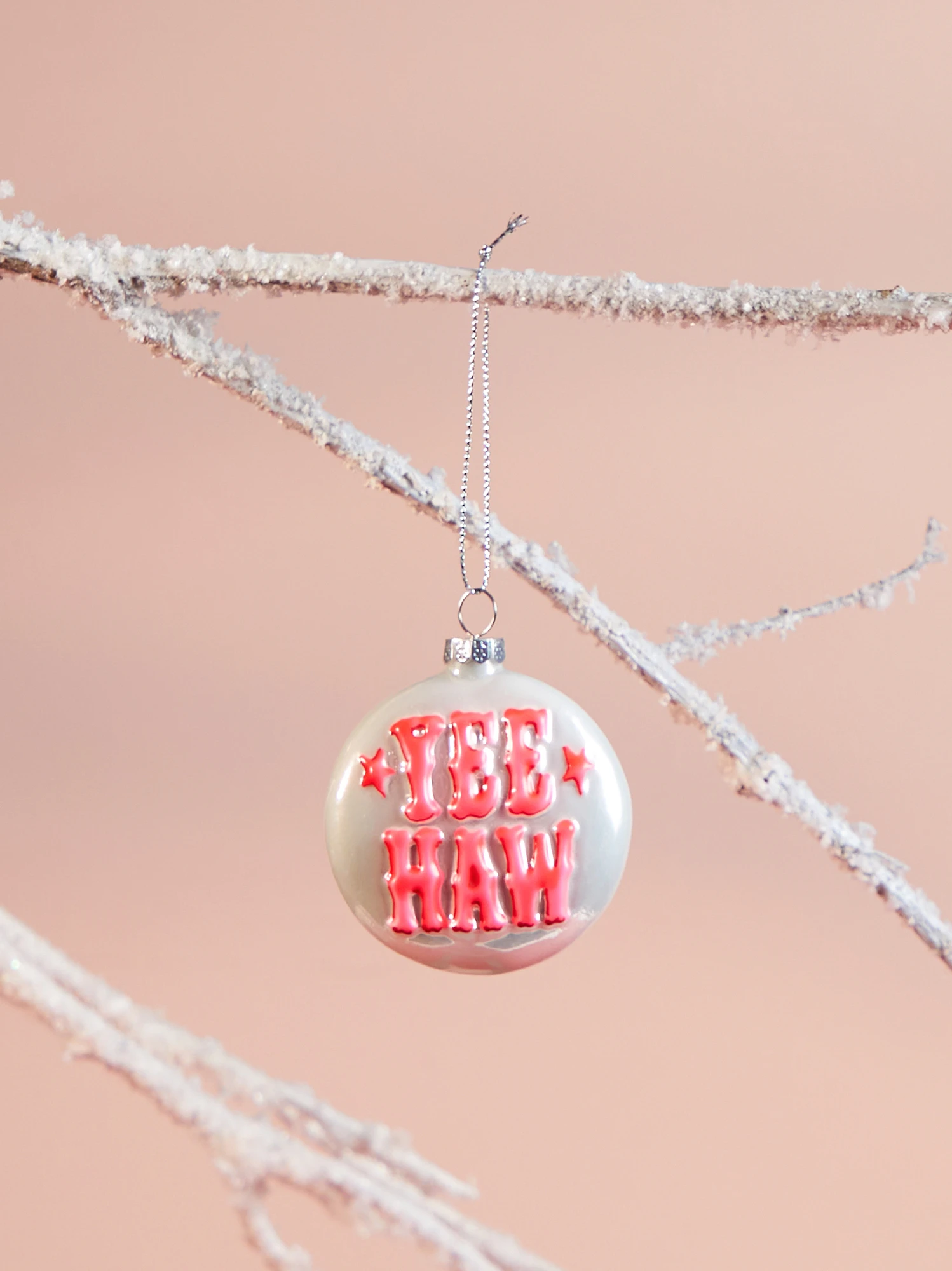 Live out your inner cowgirl in this one-of-a-kind ornament! Treat your Christmas treat with this western-inspired decoration that features glitter and hot pink text.